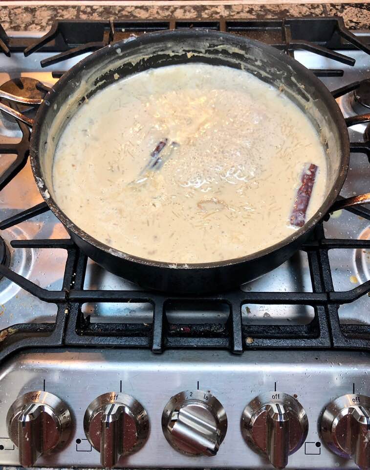 Add the sweet condensed milk and simmer over low heat for 10 minutes.