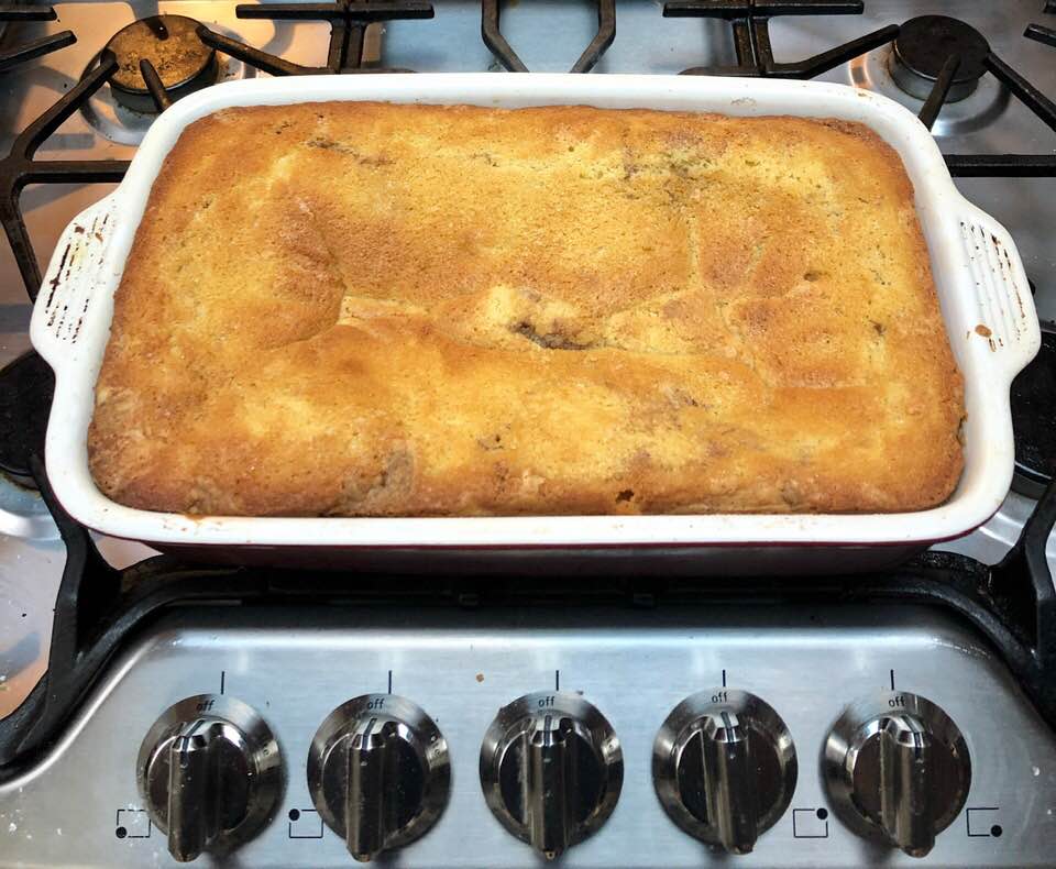 Prepare the cake: Spread half of the batter into the prepared pan. Sprinkle the cinnamon-sugar layer over the top of the batter in an even layer. Spread the remaining batter over the top (this does require some patience since the batter likes to lift off the cinnamon-sugar layer). Top the final layer of batter with the crumble mixture.