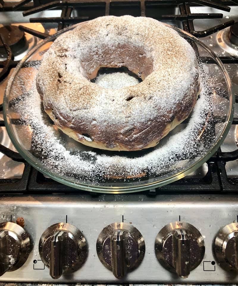 After 30 minutes, knead the dough for at least 3 minutes. You should feel a dough that is fairly easy to knead (without sticking to your hands). Form your dough into a ball and place into the oven. Let the cake bake for 25 minutes.
