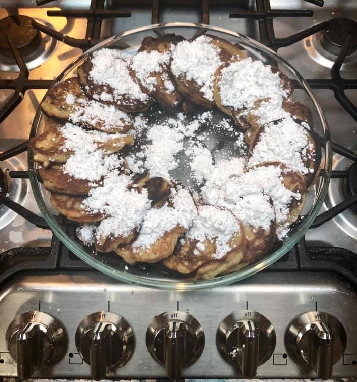 Serve generously sprinkled with sugar (I prefer regular sugar over powdered sugar).