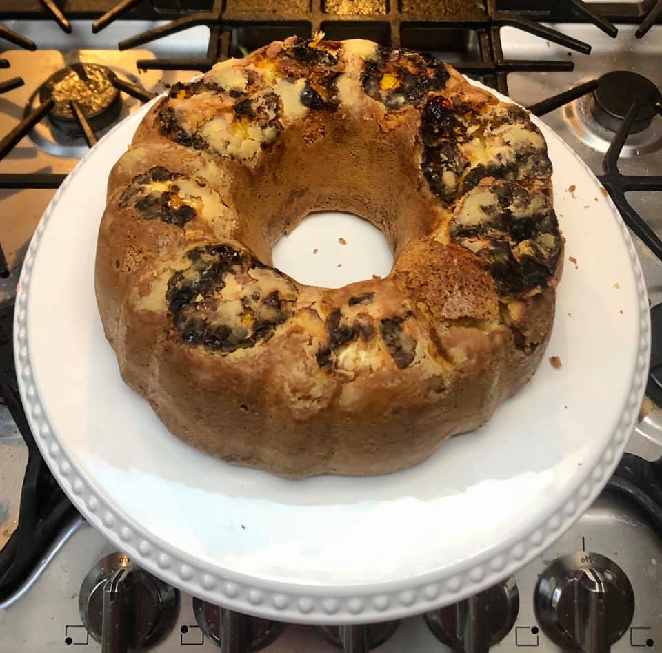 Very similar to the Moroccan lemon cake from last week, only this is orange. I pot orange slice on top, which may have been a mistake and explains the caramelized blobs on top…
